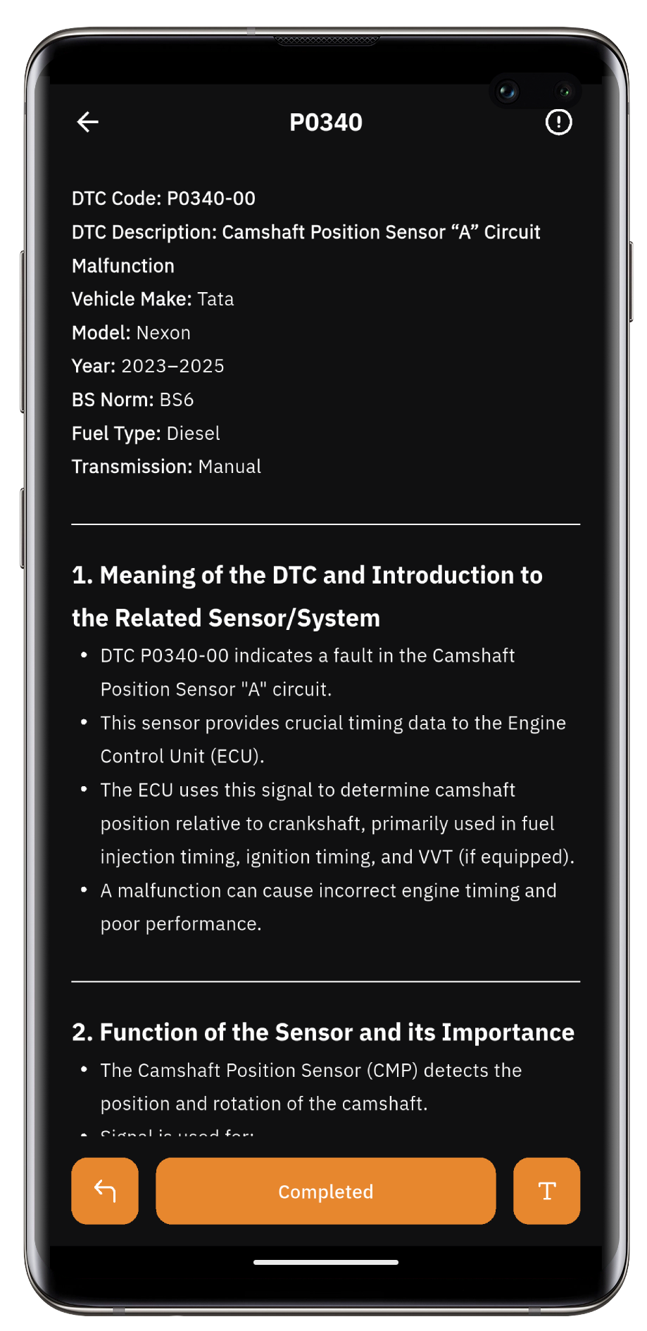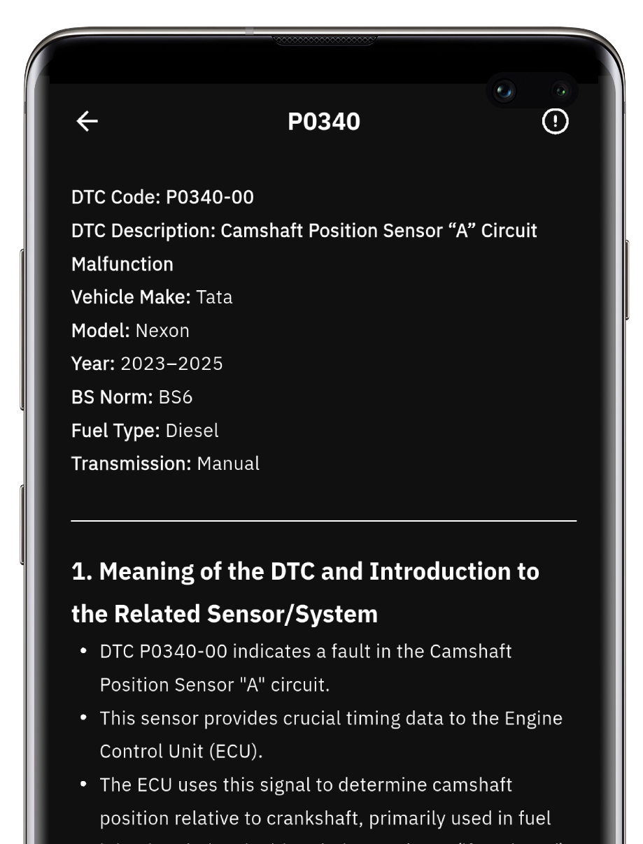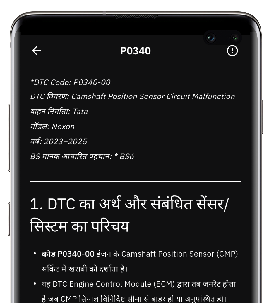 Our clean, mechanic-friendly design makes it easy to find and understand DTC solutions. No clutter, no confusion — just clear repair steps, and testing methods in Hindi & English.